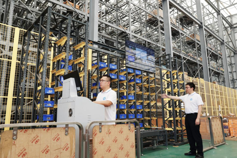 條碼識別后,貨物經(jīng)過環(huán)線穿梭車(RGV)實現(xiàn)自動存放;AGV協(xié)助入庫貨物實現(xiàn)全自主移動;堆垛機(jī)將貨物迅速從貨架取出,并自動輸送到分揀區(qū)……這是健康基地園區(qū)企業(yè)廣東得友鑫物流系統(tǒng)設(shè)備有限公司自主研發(fā)生產(chǎn)的自動化立體倉,展示了貨物從入庫、運(yùn)輸、分揀到出庫等全流程的智慧倉儲服務(wù)能力。