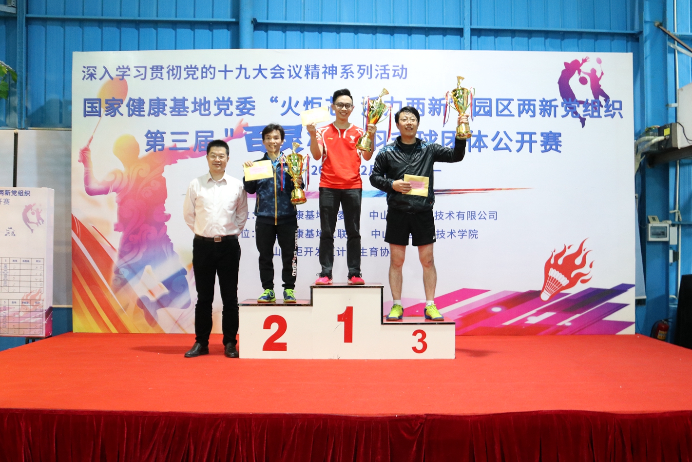 為深入學(xué)習(xí)貫徹落實(shí)黨的十九大會(huì)議精神,1216日,國(guó)家健康基地黨委在開發(fā)區(qū)小隱千羽羽毛球館組織舉辦了“火炬芯·活力兩新”園區(qū)兩新黨組織第三屆“百靈杯”羽毛球團(tuán)體公開賽。本次活動(dòng)由健康基地黨委、中山百靈生物技術(shù)有限公司主辦,國(guó)家健康基地工聯(lián)會(huì)、中山火炬職業(yè)技術(shù)學(xué)院、開發(fā)區(qū)計(jì)生協(xié)會(huì)協(xié)辦。健康基地黨委書記方迎、副書記吳琰光出席活動(dòng)。