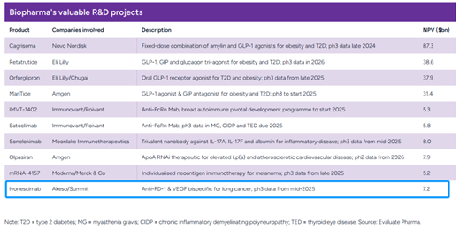 這份深度報告特別強調(diào)了依沃西在2024年對全球生物制藥行業(yè)產(chǎn)生的深遠影響:“在生物制藥領域,免疫學與代謝科學成為近年來的研究熱點,而腫瘤學依舊占據(jù)著舉足輕重的地位。雙特異性抗體作為腫瘤學領域備受矚目的創(chuàng)新方向,依沃西正是其中的杰出代表。依沃西由康方生物自主研發(fā),并將部分海外權益許可給Summit Therapeutics進行進一步開發(fā)。在中國開展的一項研究中,依沃西在與Keytruda(帕博利珠單抗)的頭對頭III期臨床對比中展現(xiàn)出顯著的療效優(yōu)勢,這不僅引發(fā)了全球業(yè)界對PD-1/VEGF雙靶點機制的極大興趣,更彰顯出中國在創(chuàng)新藥物研發(fā)領域的強大實力與獨特優(yōu)勢。