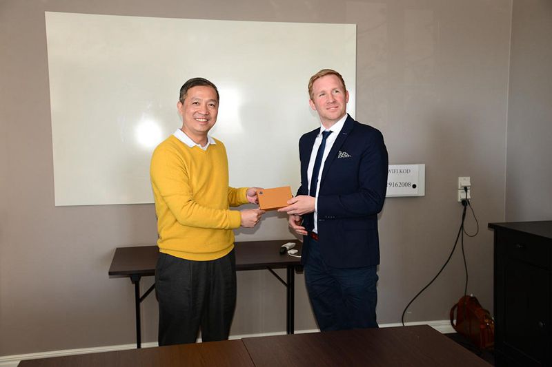 侯奕斌常委向西瑞典商會(huì)負(fù)責(zé)人Niklas Delersjö贈(zèng)送中山紀(jì)念品